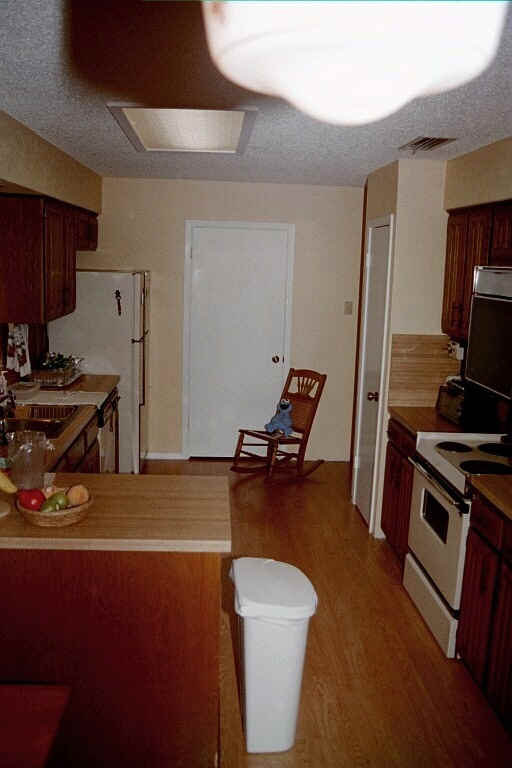 | October 2000 | Move out of kitchen and master suite; contractors finish building new pantry, mount new bath cabinets, sheetrock where needed, paint & trim east end of house. Flooring contractors install Pergo throughout east end. |