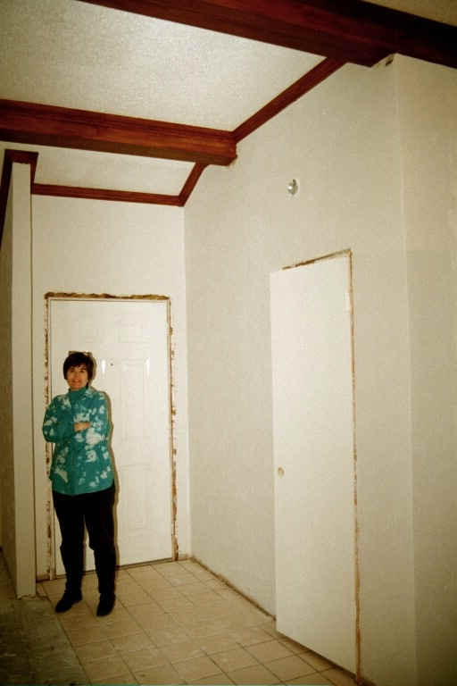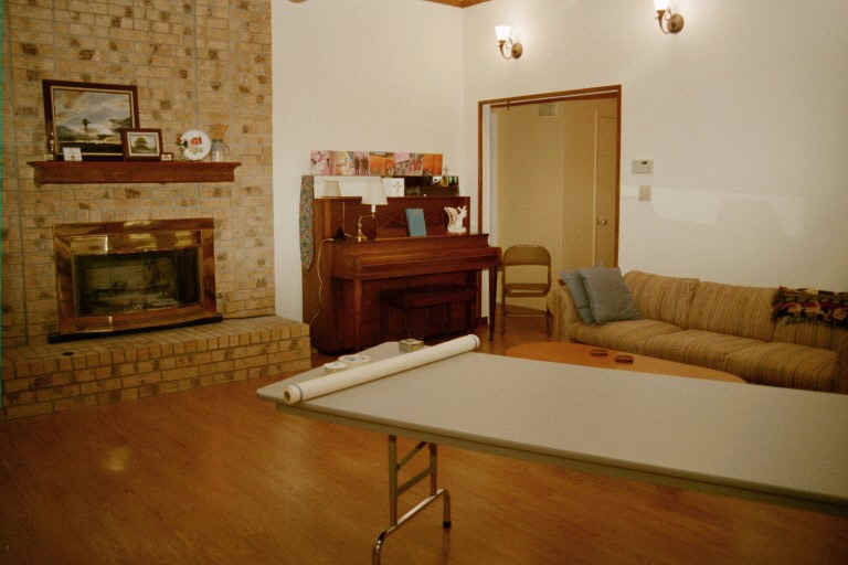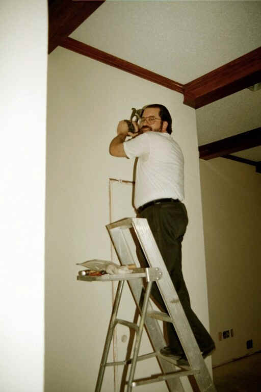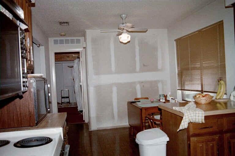 | February 2001 | Move furniture and decorations out of the center third of the house. Hang dust shields on doorways. Contractors knock out dining room wall and ceiling and replace it with a beam. |