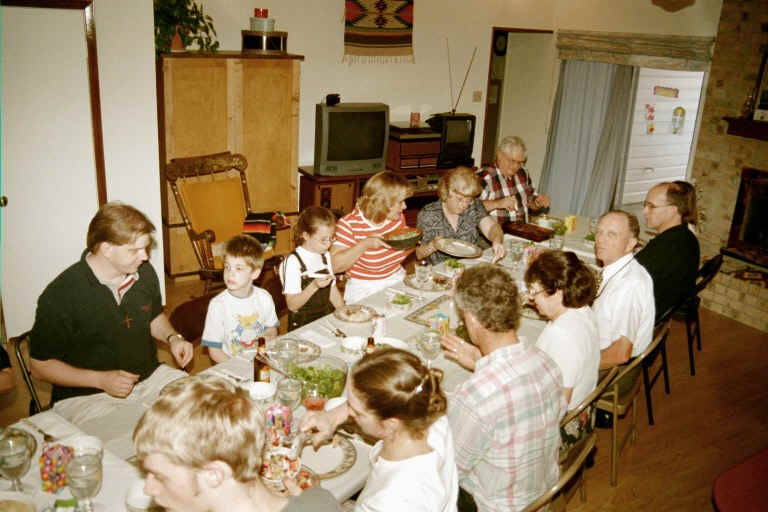 | April 15, 2001 | Easter Dinner for 17 in the new room! Praise the Lord for family, friends, our new space -- and for His promise: "I am the resurrection and the life. He who believes in Me will live, even though he dies." (John 11:25) |